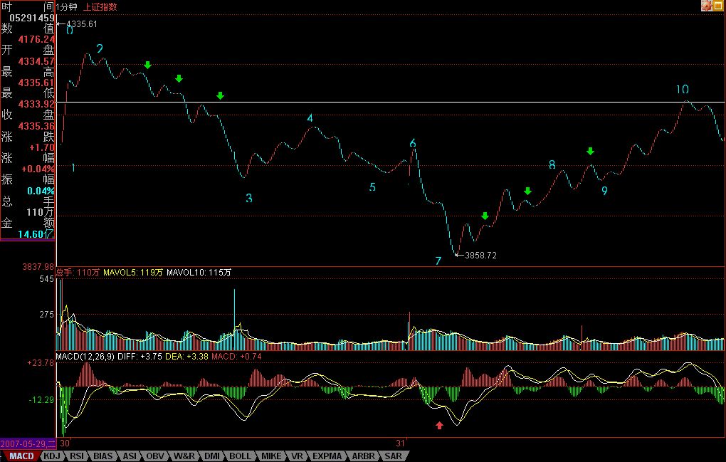 看到很多人还是发蒙,因此,就用这两天的1分钟图,继续说说怎样进行图解。当然,这些图解都是可以当下进行的。今天看回帖,好象有人希望本ID在什么QQ上即时发布什么提示之类的,这绝对不可以,QQ对于本ID来说只是用来419的,用来说股票也太浪费了,而且,本ID那4小时是天王老子都不能打扰的,说句不太客气的话,本ID的资金,大概比来这里所有人的资金之和都多,本ID忙着上QQ,出问题了谁负责?所以,最多就这样形式了,很多事情,还是要靠自己多练习,本ID最多就是一个陪练的。